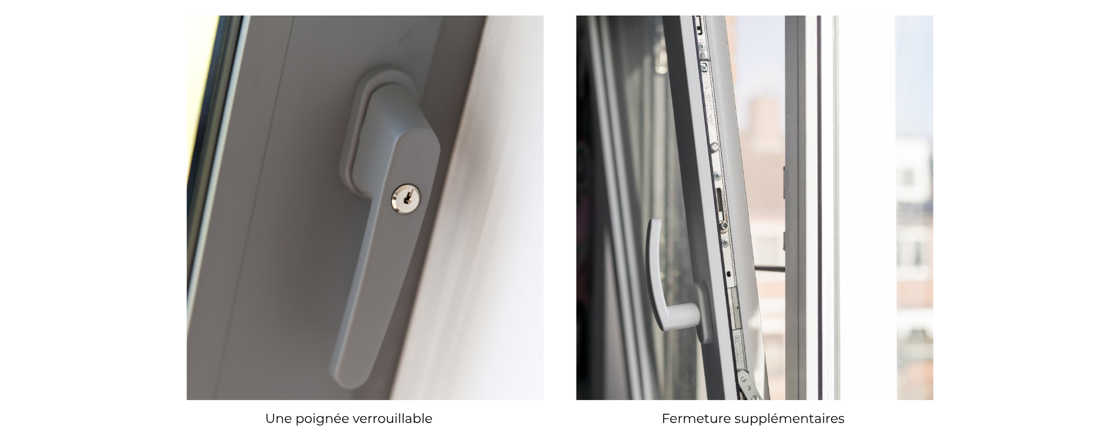 Selon le matériau choisi (PVC, aluminium ou bois), il peut s’agir d’une serrure pêne ou crochet, d’une serrure semi-automatique (où les pênes demi-tour se déploient automatiquement à la fermeture), ou d’une serrure entièrement automatique (qui se verrouille immédiatement sur trois points).